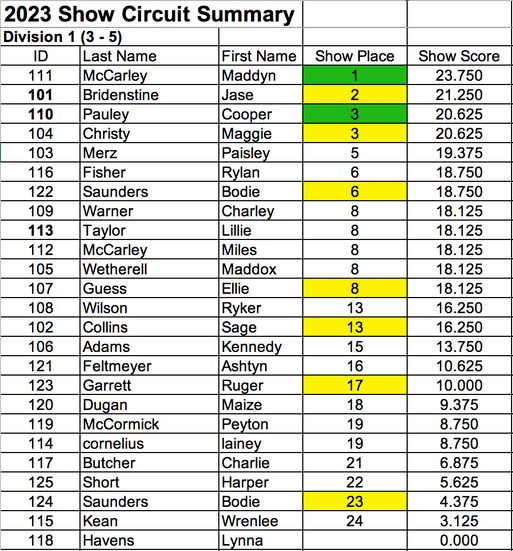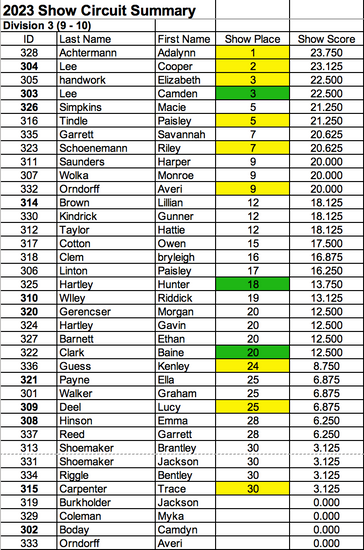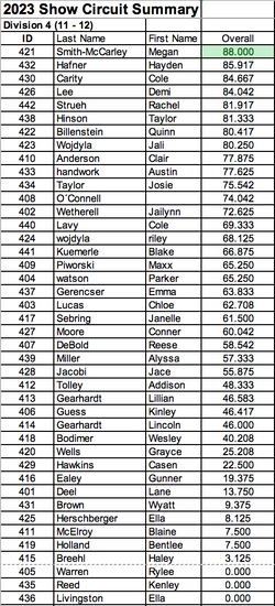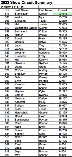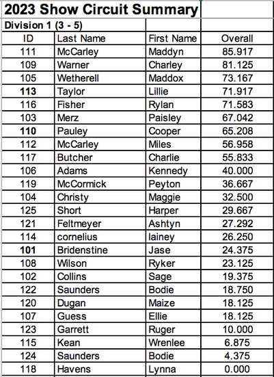 The 2023 Buckeye Show Circuit participants were split in to 7 divisions by age as of January 1.Â