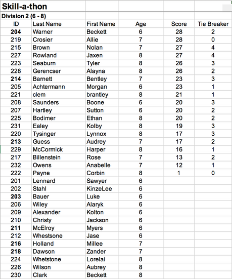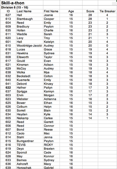 Ties are broken by how an exhibitor did in the skill-a-thon tie-breaker.Â