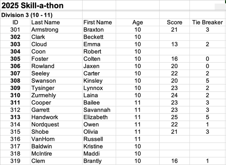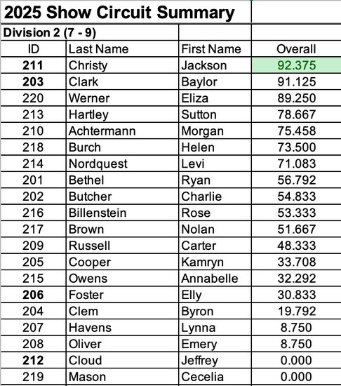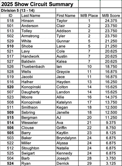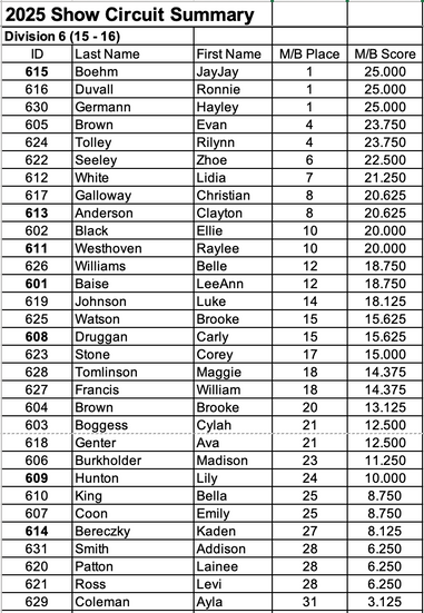 The 2025 Buckeye Show Circuit participants have been split in to divisions by age as of January 1, 2025.Â